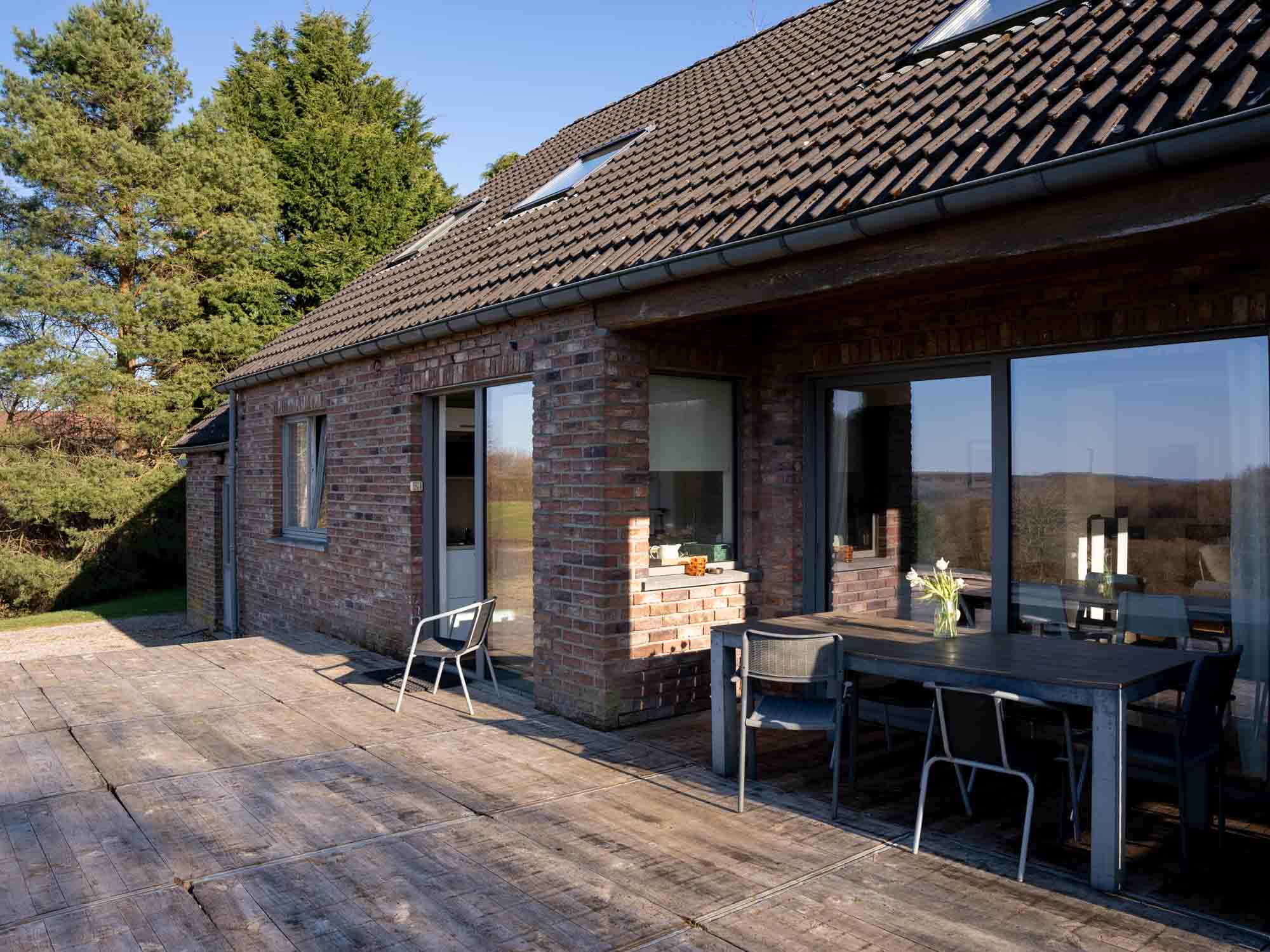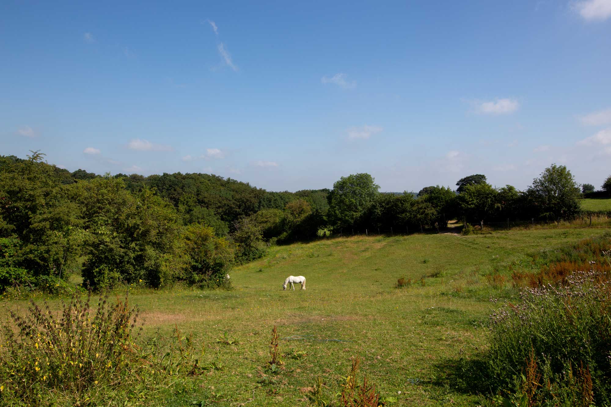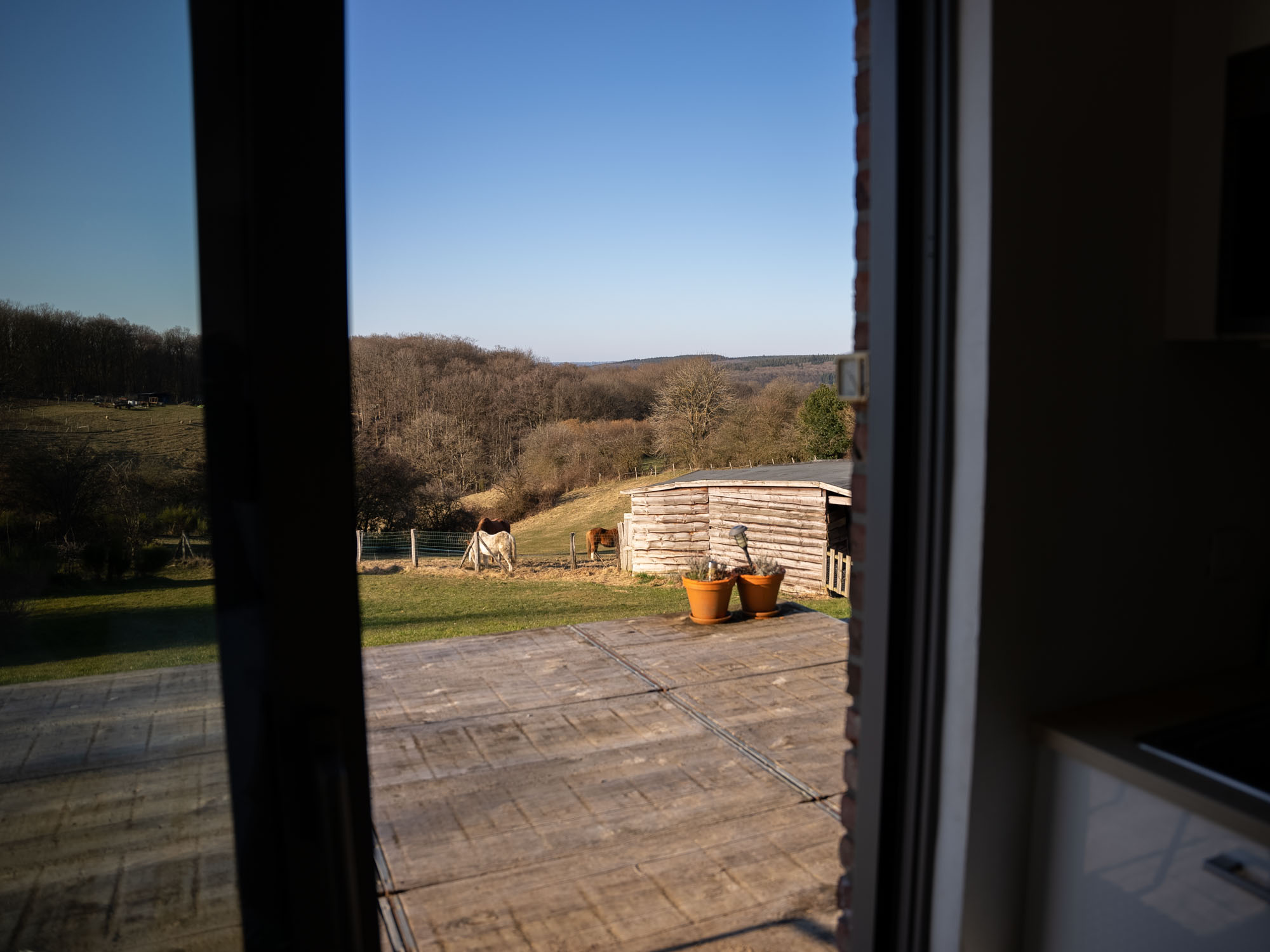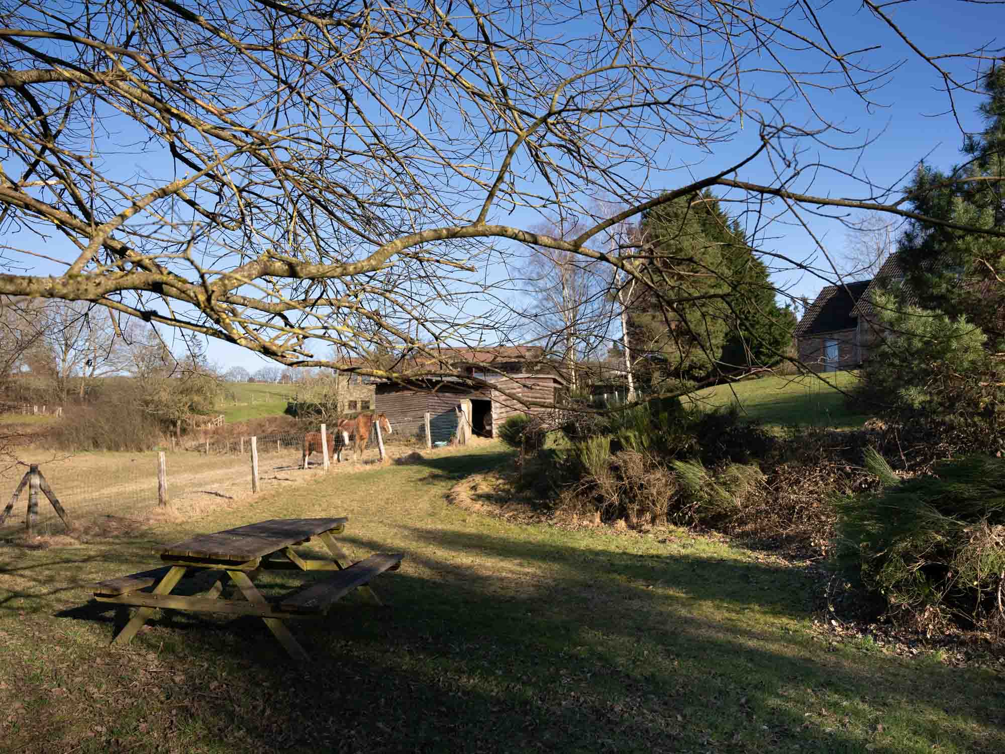 Le jardin est grand et dispose d’une grande terrasse plein sud, parfaite pour les apéros tardifs. Dans le pré voisin, habitent poneys et chevaux.