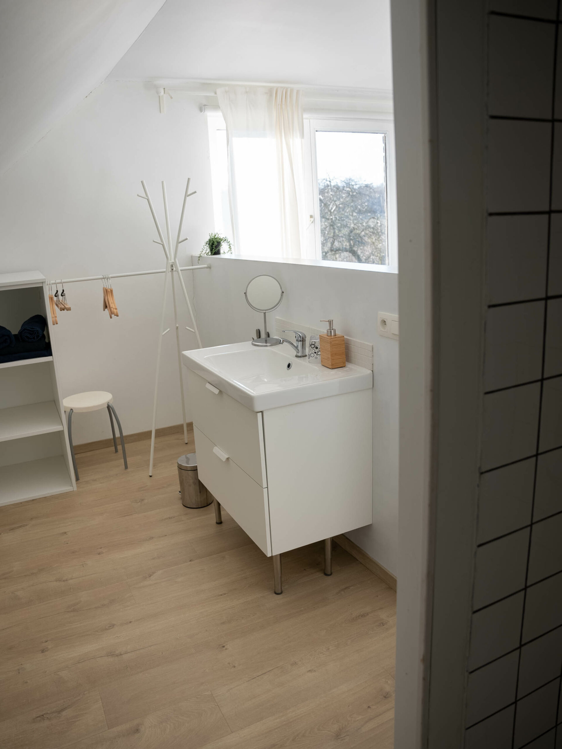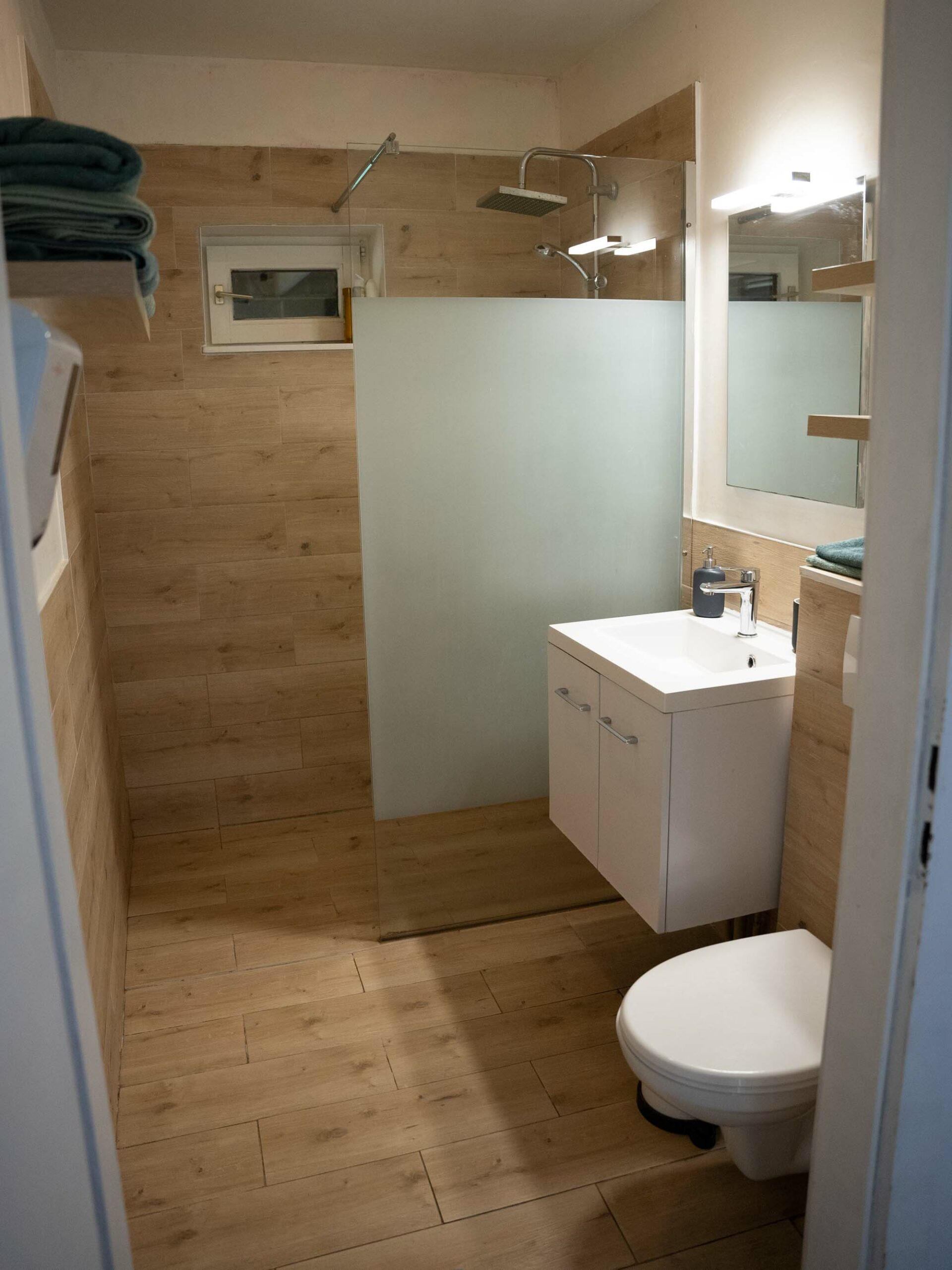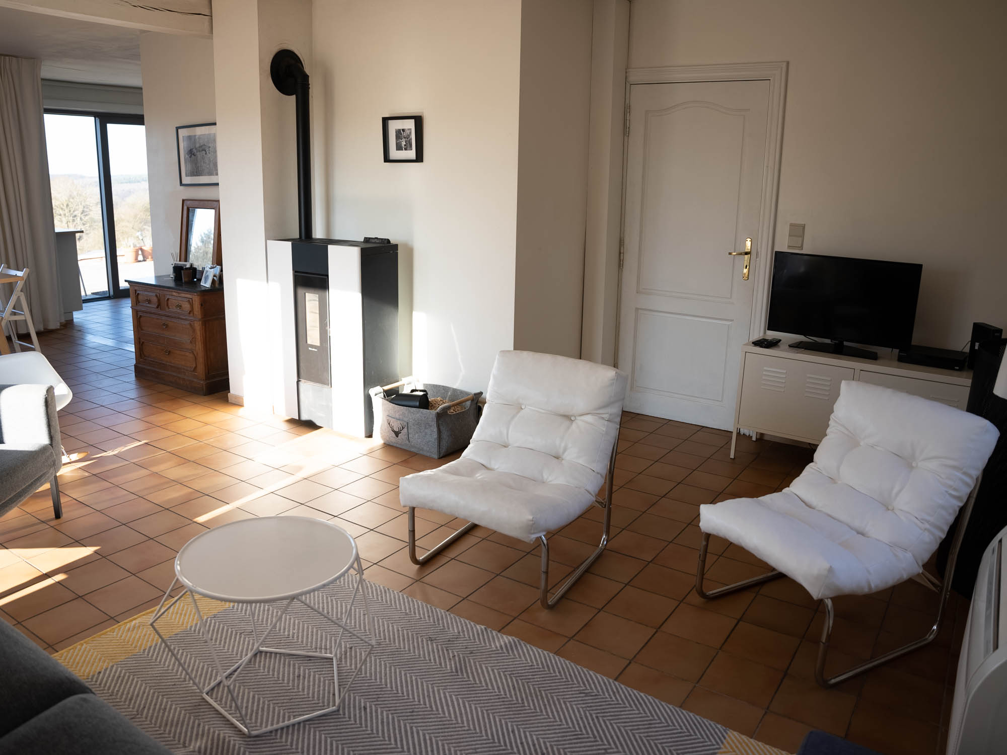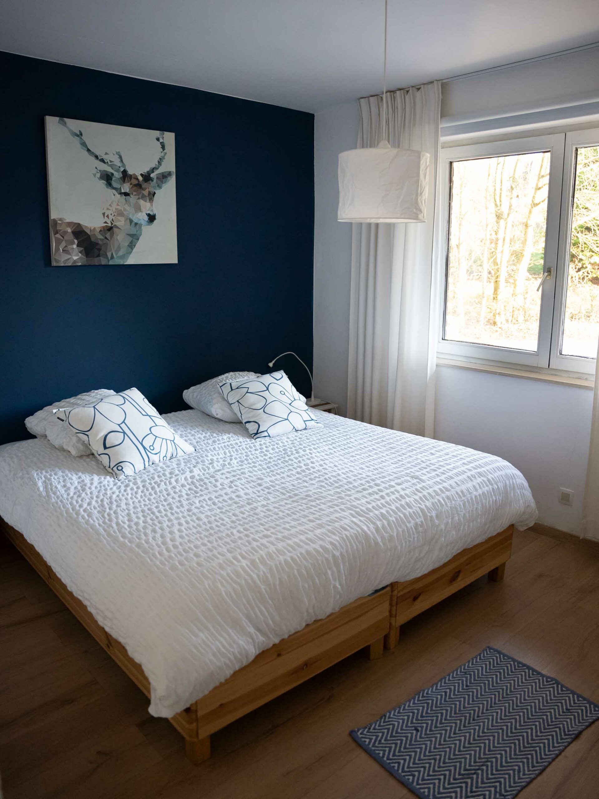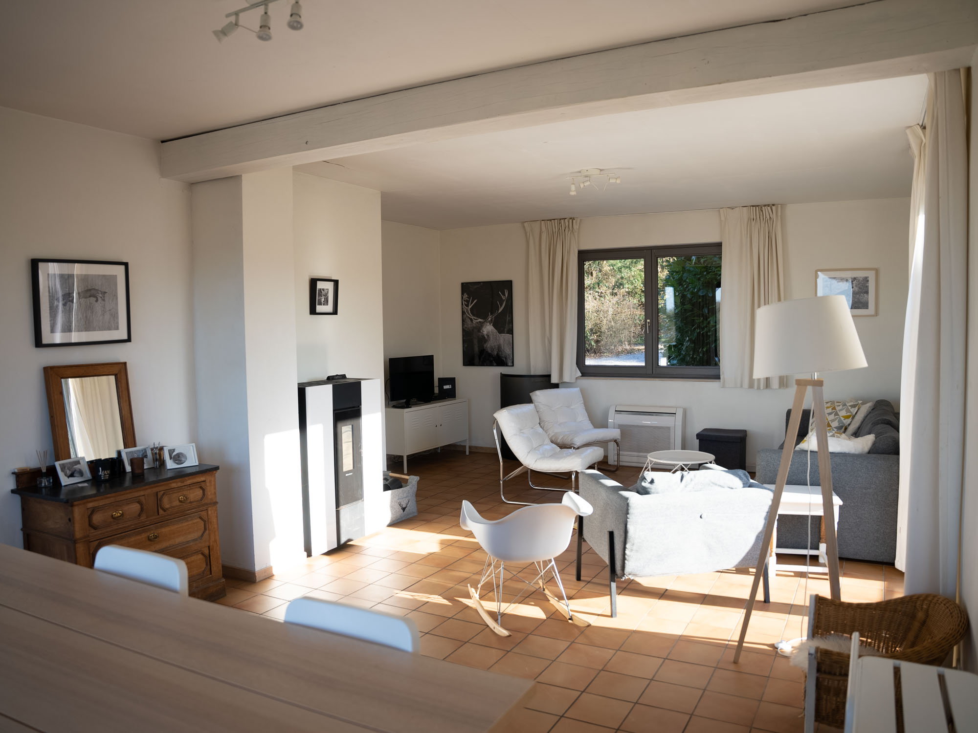 Au rez-de-chaussée, il y a un bel espace salon avec un poêle à granules et une salle à manger, une cuisine toute équipée, un hall d’entrée, deux chambres et une salle de bain. À l’étage, vous découvrirez une grande chambre avec un lit double et une spacieuse salle de bain.